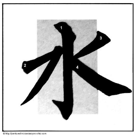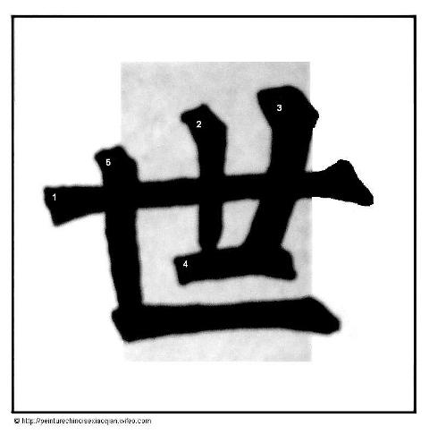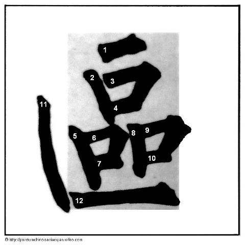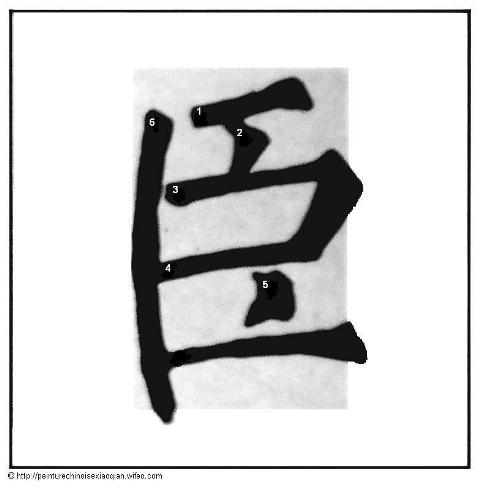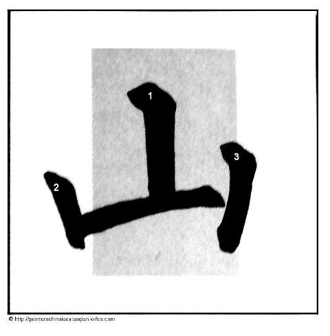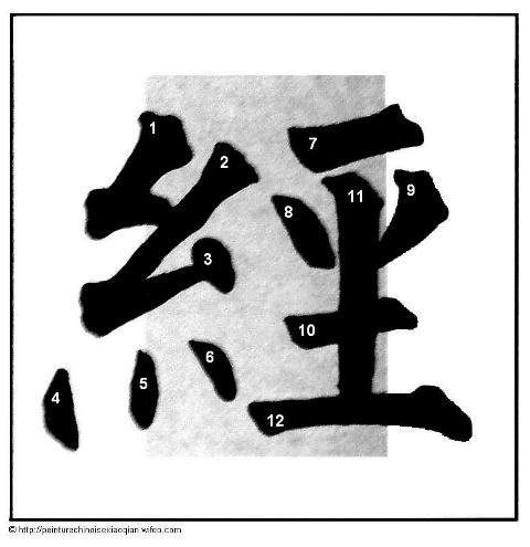 Voici la suite des différents traits brisés du style Liu. Pour chaque trait est donné un exemple de caractère chinois. Sur chaque trait de chaque caractère est donné un numéro en fonction de l’ordre d’écriture des traits du caractère. Le numéro est inscrit à l’amorce du trait.