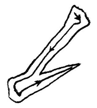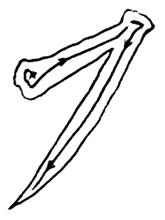 - Le trait jeté descendant de droite à gauche (pie)