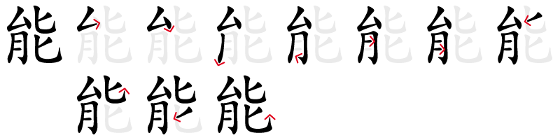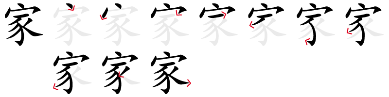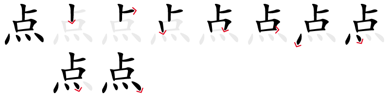 Notez la présence du 中 (vu dans la séquence 4) qui est l'élément phonétique du caractère.