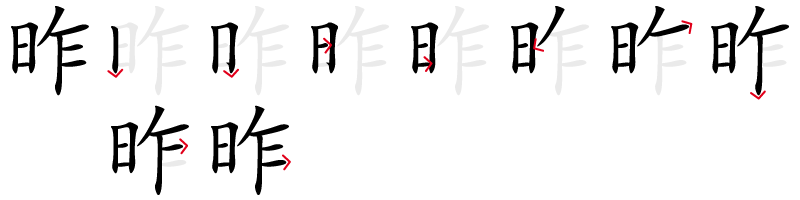 Clés : 日 soleil; 乍 encolure d'un vêtement (ce n'est pas une clé officielle mais cela permet de retenir le caractère).