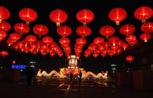 观灯 guāndēng : promenade pour admirer les lanternes décoratives; divertissements jubilatoires des défilés de lanternes décoratives