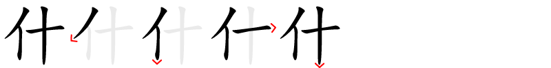 clés: 亻 Mensch / Mensch-; 十 zehn.