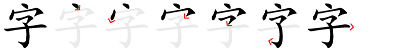 clés: 宀 Dach; 子 Kind.