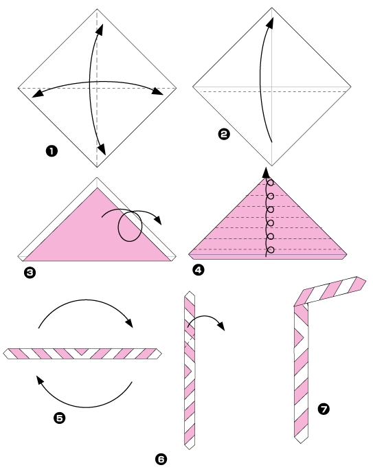 Ovdje su različite faze da se postigne origami od slame :
