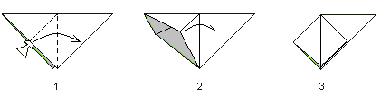 Flip ditekan dibuka mulai dasar dari bom air. Satu tanda dengan lipatan pada panjang ( 1 ). Satu membuka kertas sambil menekan bagian atas ( 2 ) untuk mendapatkan semacam meja kecil ( 3 ) maka salah satu Menjalankan ulang dasar bom ke air sambil menjaga tombak di bawah ini :