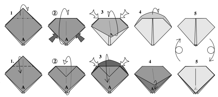 The menyelubungi lipat terdiri menyelubungi bagian dari origami. Baris pertama menyajikan lipat menyelubungi dengan sebelum dan baris kedua lipat menyelubungi by belakang :