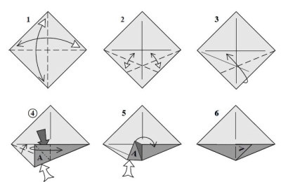 Lipatan yang berbeda yang digunakan untuk mencapai origami tidak terbatas. Lipatan ini telah terdaftar dan sering diklasifikasikan dalam tiga tingkat kesulitan. sebagai simbol, Lipatan dasar origami harus diketahui dengan baik untuk memudahkan pembacaan diagram ( deskripsi implementasi dari origami ). Dalam halaman ini kami menyajikan Anda ini lipatan yang berbeda dari pangkalan di urutan kesulitan.