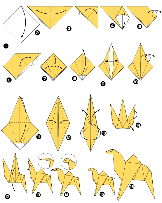 Hier zijn de verschillende stadia van een origami van dromedaris te bereiken: