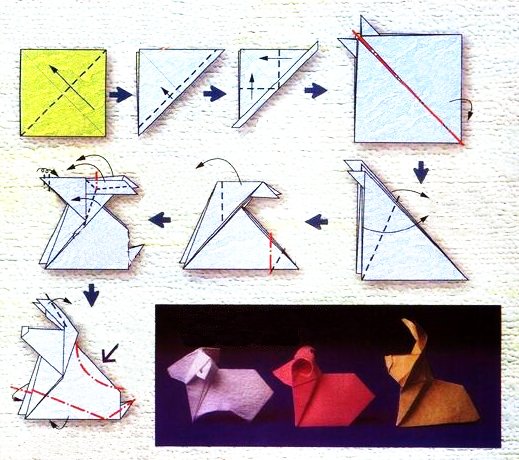Hier zijn de verschillende stadia van een origami van bereiken de taurus, Model 2: