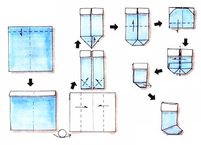 Hier zijn de verschillende stappen te komen tot een sok servet vouwen: