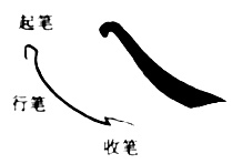 Kinesisk kalligrafi er fem viktige avslutninger. Den trykket opphører, til venstre på bildet nedenfor, er å trykke børsten på enden av linjen. Den hevede avslutning , i midten av bildet, er å heve børsten forsiktig på enden av linjen. Spissen av retur , høyre på bildet , viser enden av børsten ved å komme tilbake på sine skritt ved slutten av linjen.
