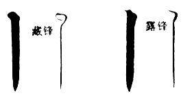 Linjen i kinesisk kalligrafi har to slags begynnelse : den skjulte tips og synlig tips. Den skjulte spissen , til venstre på bildet nedenfor , må gå i motsatt retning og skråstilling av linjen. Som navnet antyder , skjuler det spor av tuppen av børsten. Den synlige spissen, høyre på bildet , må gå i en skrå og samme retning av linjen. Det er dermed avsløre spissen av børsten.