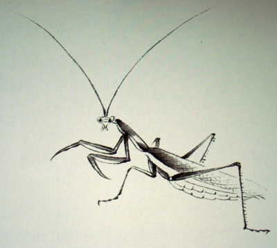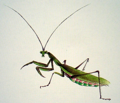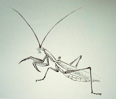 Voici les différentes étapes pour peindre la mante religieuse en peinture chinoise gongbi :