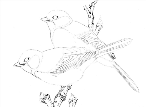 Voici les différentes étapes pour peindre une mésange en peinture chinoise gongbi :