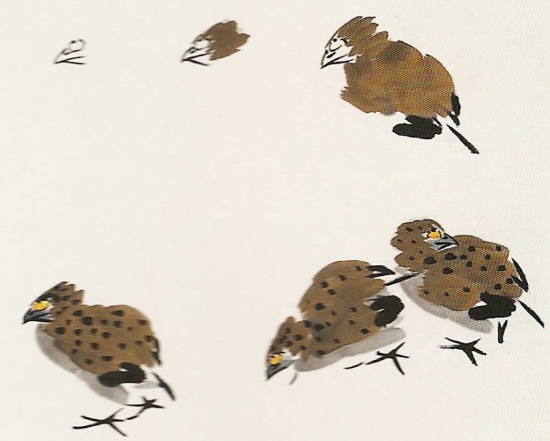 Voici les différentes étapes pour peindre une caille en peinture chinoise xieyi :