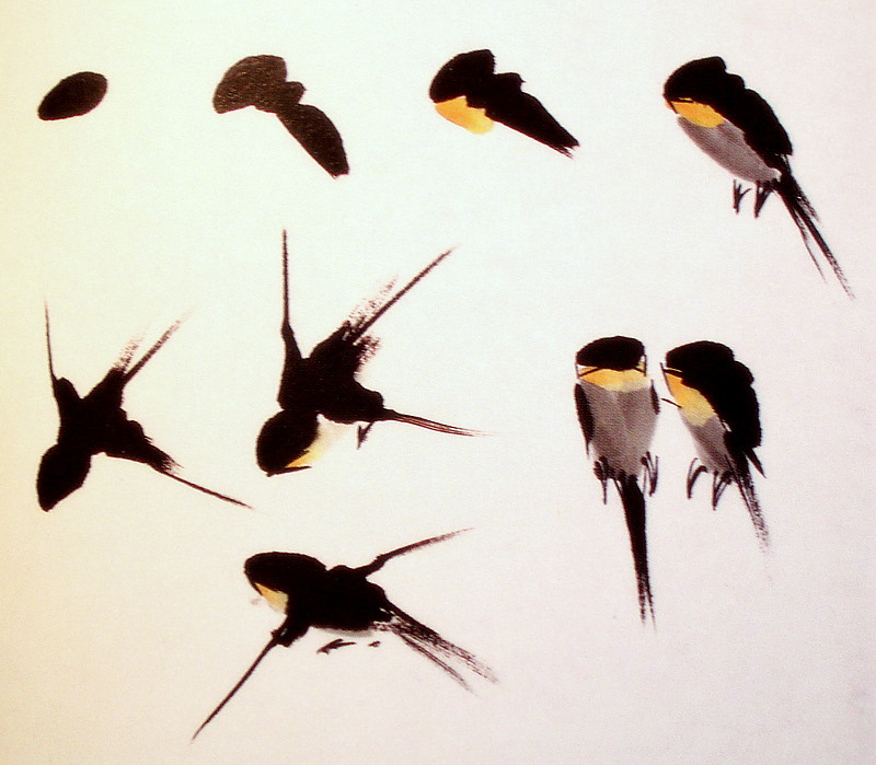 Voici les différentes étapes pour peindre une hirondelle en peinture chinoise xieyi :