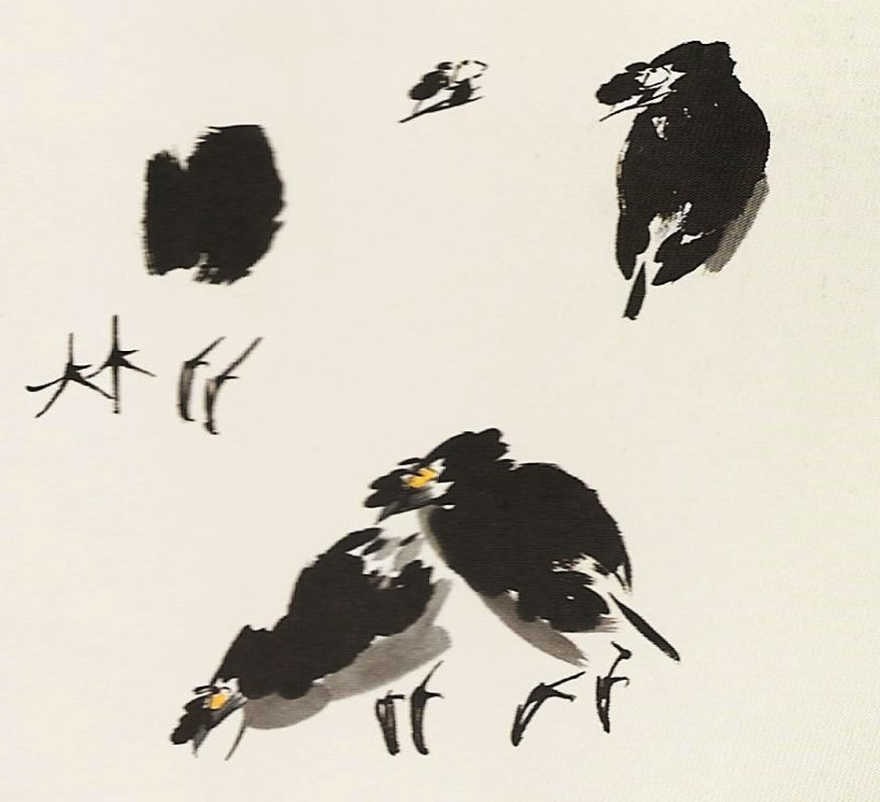 Voici les différentes étapes pour peindre un merle huppé de Chine en peinture chinoise xieyi :