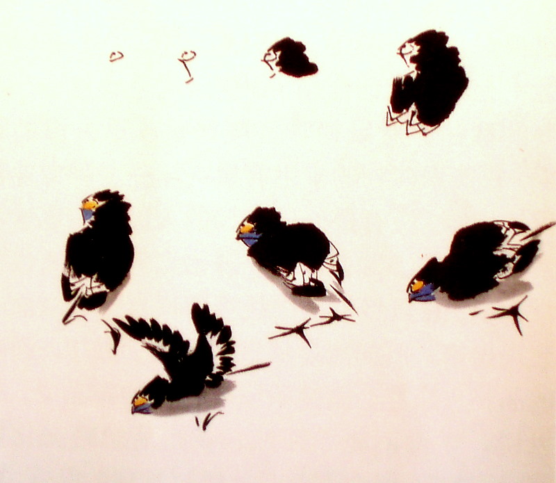 Voici les différentes étapes pour peindre une mésange en peinture chinoise xieyi :