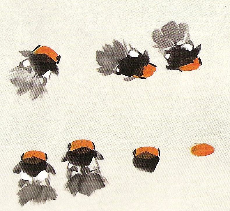 Voici différents modèles pour peindre les poissons rouge en peinture chinoise xieyi :