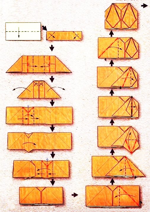 Aici sunt diferite etape pentru a realiza un origami de Gemenii, Model 2: