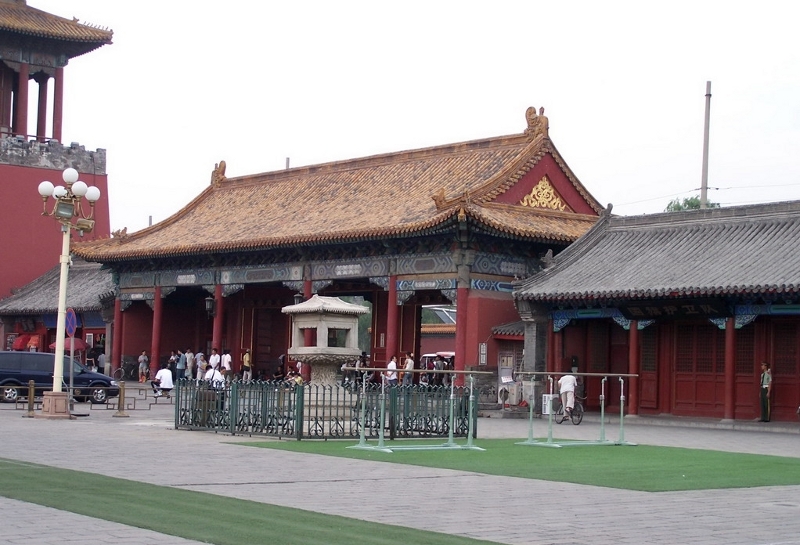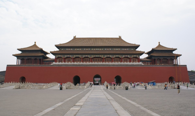 La porte du Midi 午门 est le lieu où l'empereur présidait les parades militaires et annonçait le nouveau calendrier. La porte du Milieu était toujours réservée à l'empereur, à l'impératrice le jour de son mariage et à la sortie des trois lauréats du concours impérial le jour de leur réception. La porte de gauche était réservée aux fonctionnaires civils et militaires et celle de droite à la famille et parenté impériales.