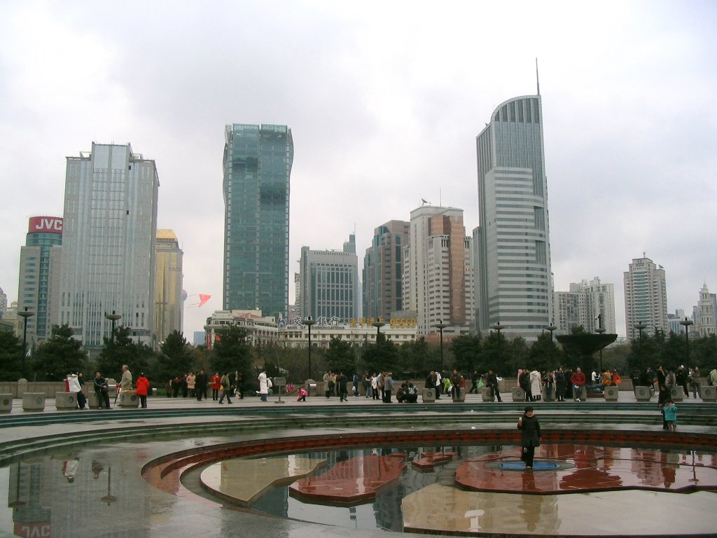 La place du peuple 人民广场 se situe à mi-parcours de la rue de nankin. Ancien hippodrome où les occidentaux venaient parier au temps des Concessions étrangères, le lieu a beaucoup changé en devenant une place entouré d'immenses immeubles fambloyants et de tours de verre et d'acier à l'aspect futuriste.
