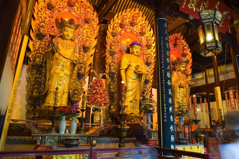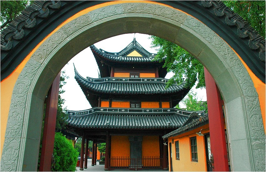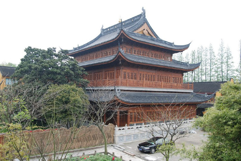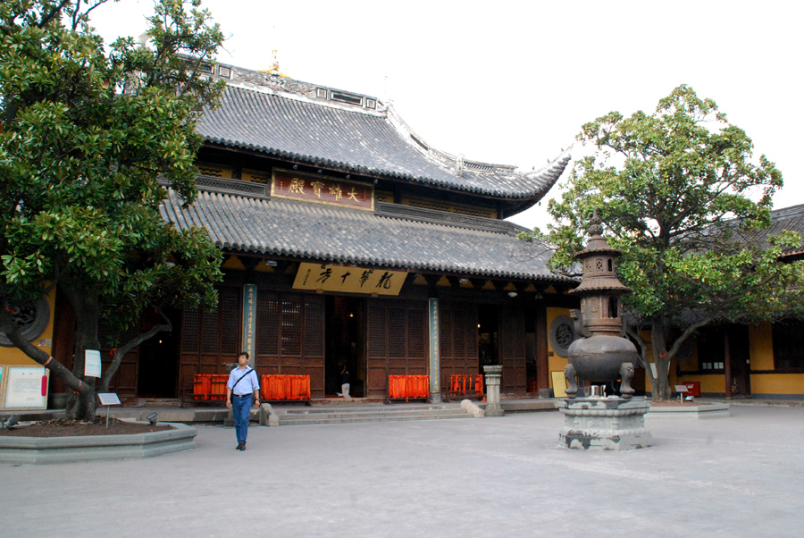 Bien que la plus-part des bâtiments sont de construction tardive, le temple a préservé des aspects architecturaux de l'école Chan (Zen) de la dynastie Song. C'est le plus grand et le plus authentique monastère bouddhiste de Shanghai.