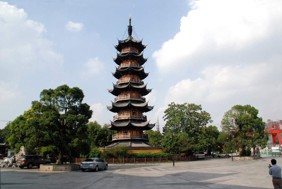 La pagode Longhua 龙华塔 est située à l'extérieur du temple Longhua. C'est une pagode octogonale de brique et de bois, haute de 6 étages. Construit à l'origine sous les Trois Royaume, la structure actuelle date de la dynastie des Song du nord. Elle a subi de nombreuses modification au cours de l'histoire. LA pagode est fragile et n'est pas ouverte au public :
