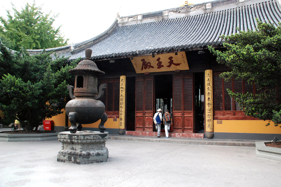 La salle des Rois Célestes 天王殿 qui abrite les statues des quatre Rois Célestes :